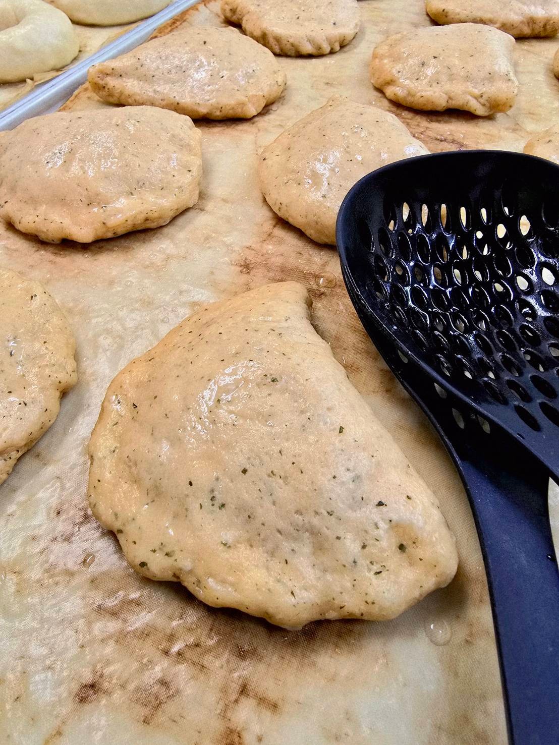 全体撮影時には真ん丸だったカレーベーグルが、會ベーグル22種セットの画像にチラリと見えています。