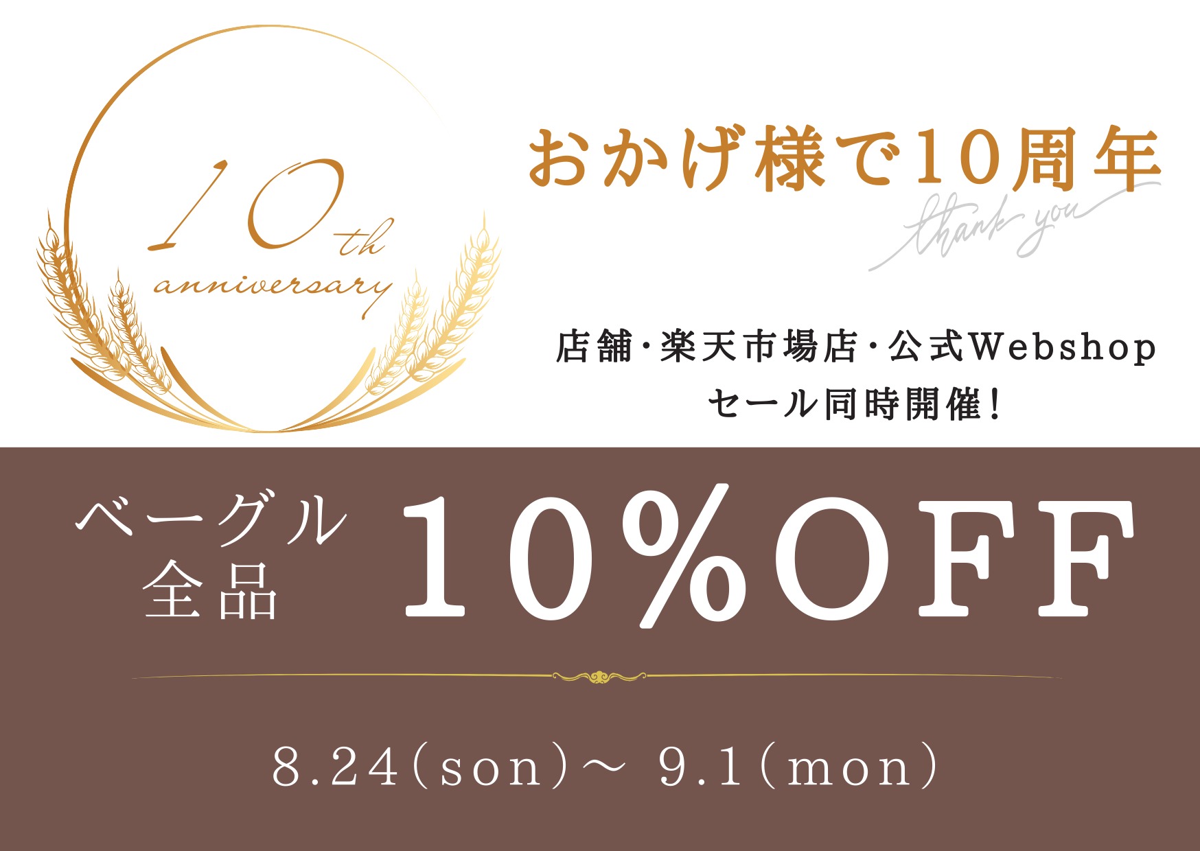 また、公式Web shopにて実施している『8のつく日は會ベーグルの日!8%OFFセール』につきまして、8/28は休止とさせていただきます。