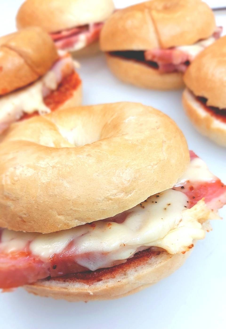 1,毎度おなじみ、會ベーグルの厚切りベーコンチーズサンド!