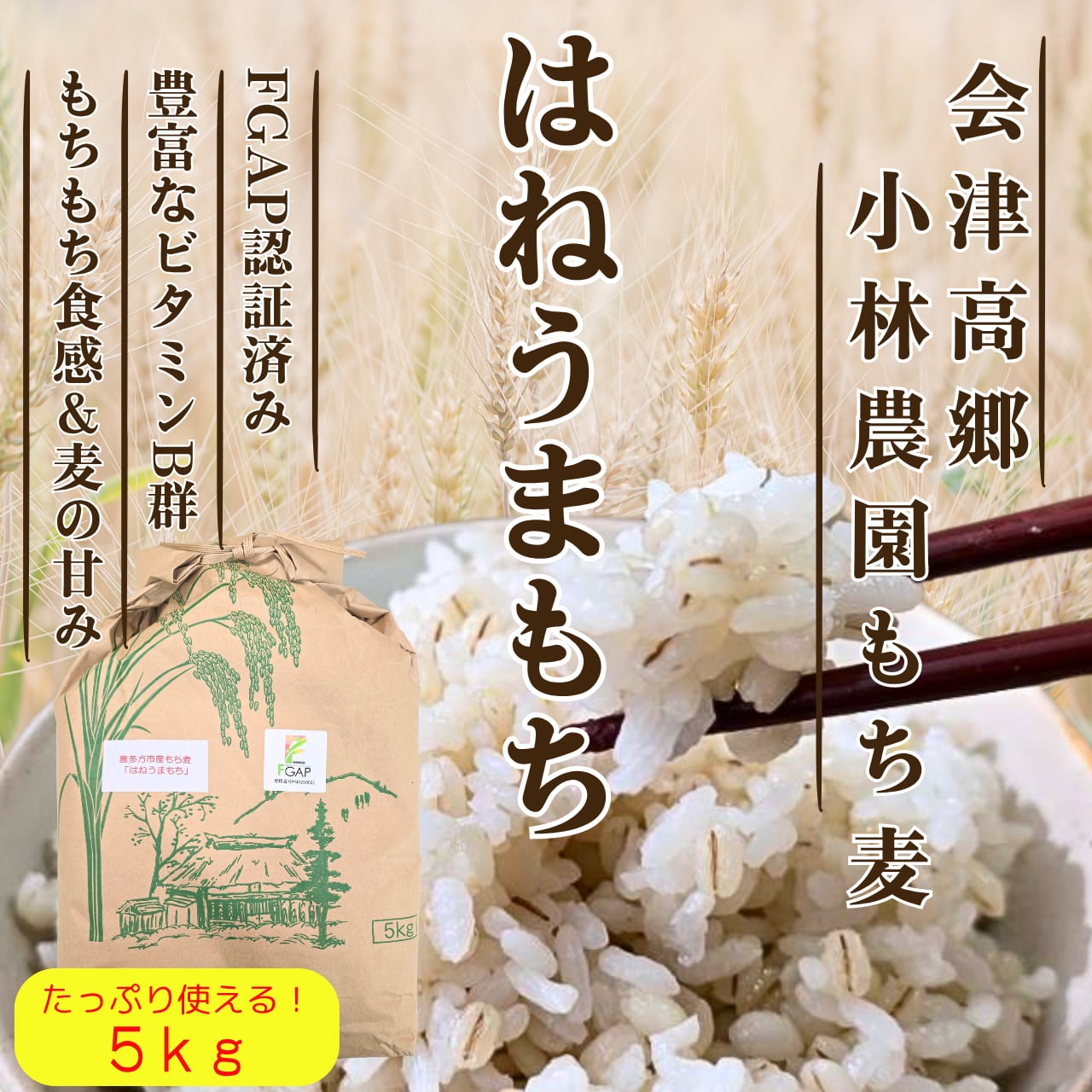 #小林農園 会津 喜多方市 高郷 自家栽培 もち麦 はねうまもち
