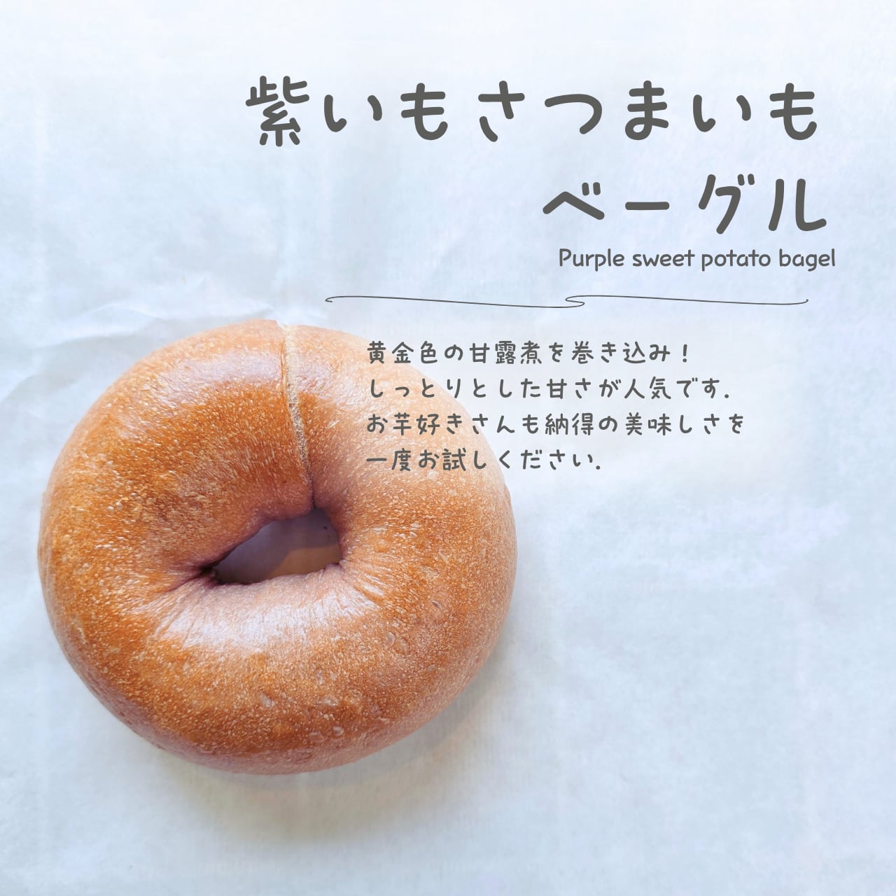 お芋好きの方からもそうでない方からも、「おいしいね!」と選んでいただける人気上昇中のこのベーグルは、トーストするとお芋がしっとりほっくり。