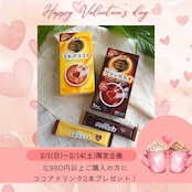2/1~2/14の2週間、3,980円以上ご購入の方にココアドリンク2本をプレゼントいたします!