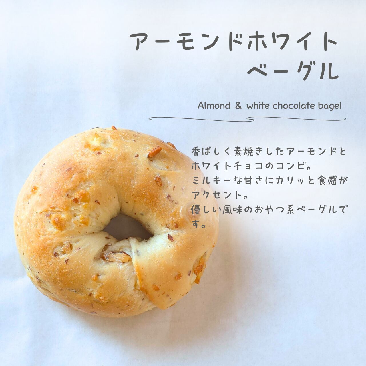 10、アーモンドホワイトチョコベーグル×1
