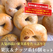 【新商品あり!プレゼント企画!】果実&ナッツ系ベーグル16個セット