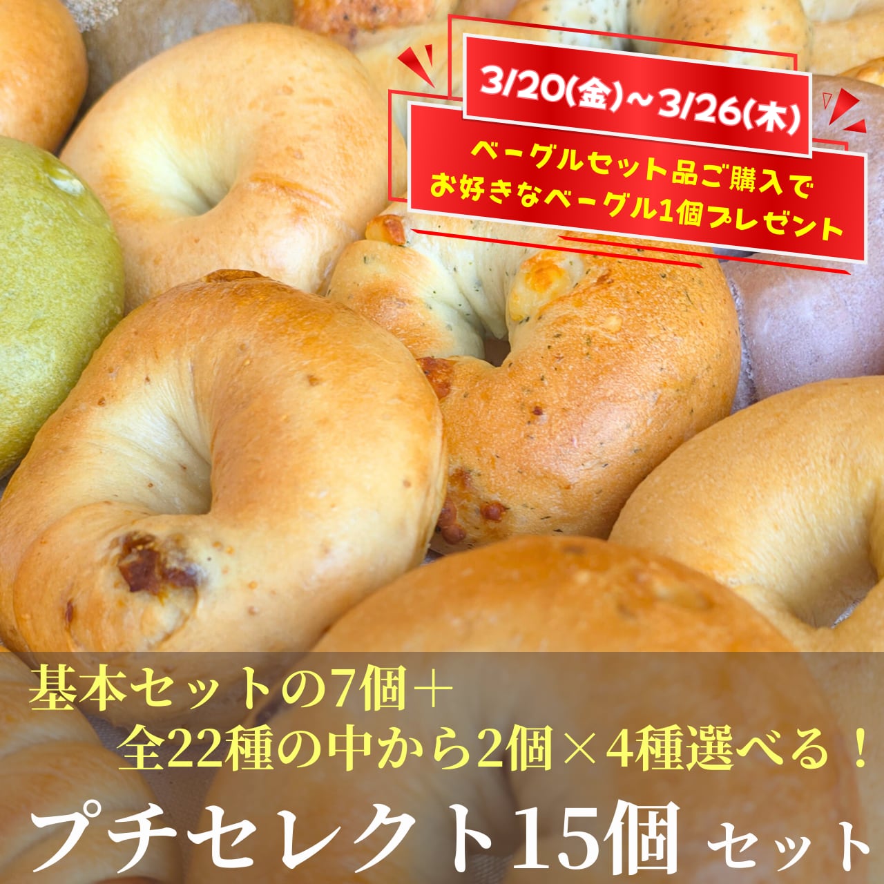 そんなプレーン系ベーグル7個を基本とした選べるセットが【プチセレクト15個セット】です。